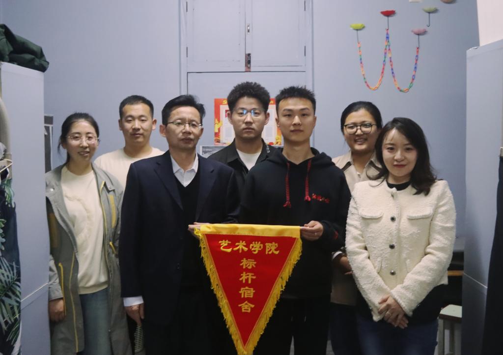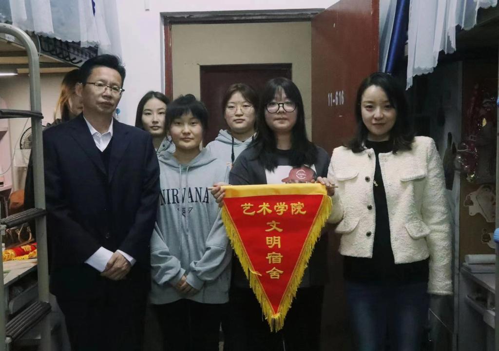 4月27日下午四点,党总支书记刘小龙、副书记钟梅、辅导员刘媛媛、郑娥走访慰问员工公寓,针对三月、四月份公寓卫生检查结果,授予31个“文明宿舍”流动红旗、3个“标杆宿舍”流动红旗。
