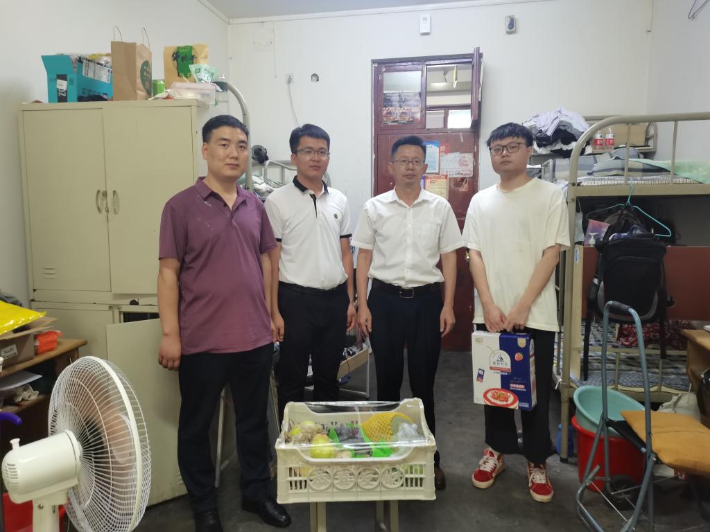 7月21日上午10点,艺术公司党总支书记刘小龙走访慰问公司暑期留校员工,叮嘱注意事项,向同学们传达了公司领导的关心和问候,并送去了慰问品,团总支书记张磊、辅导员杨壮林陪同走访。