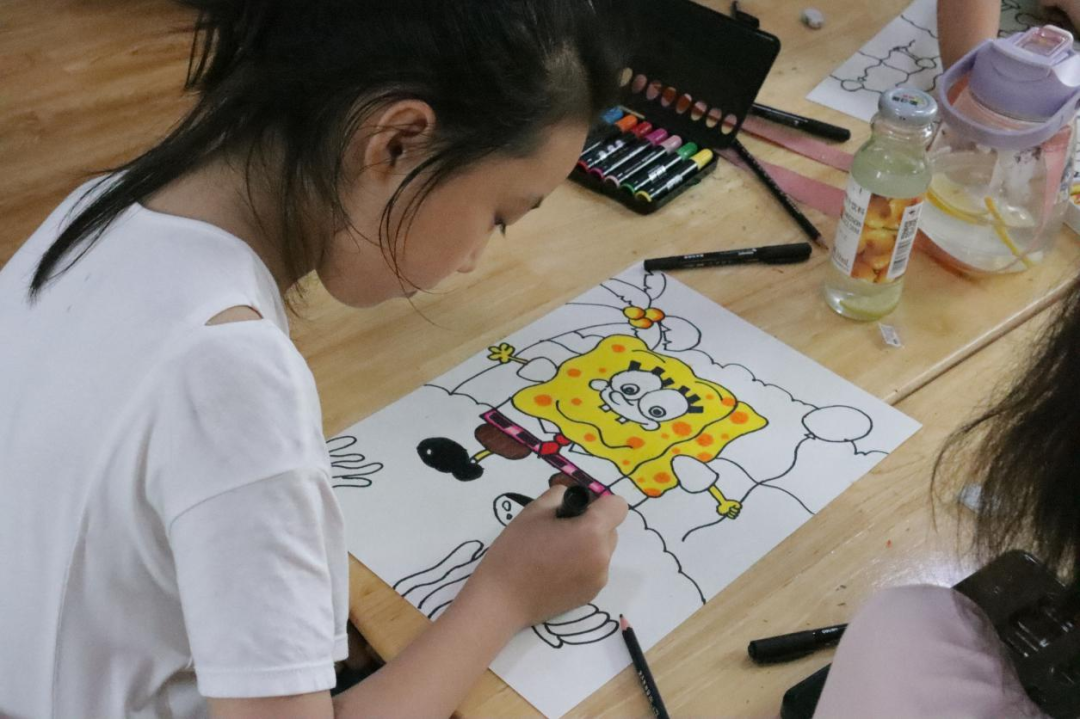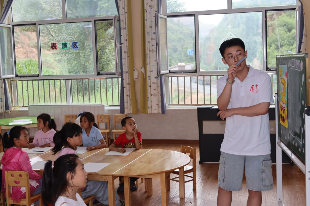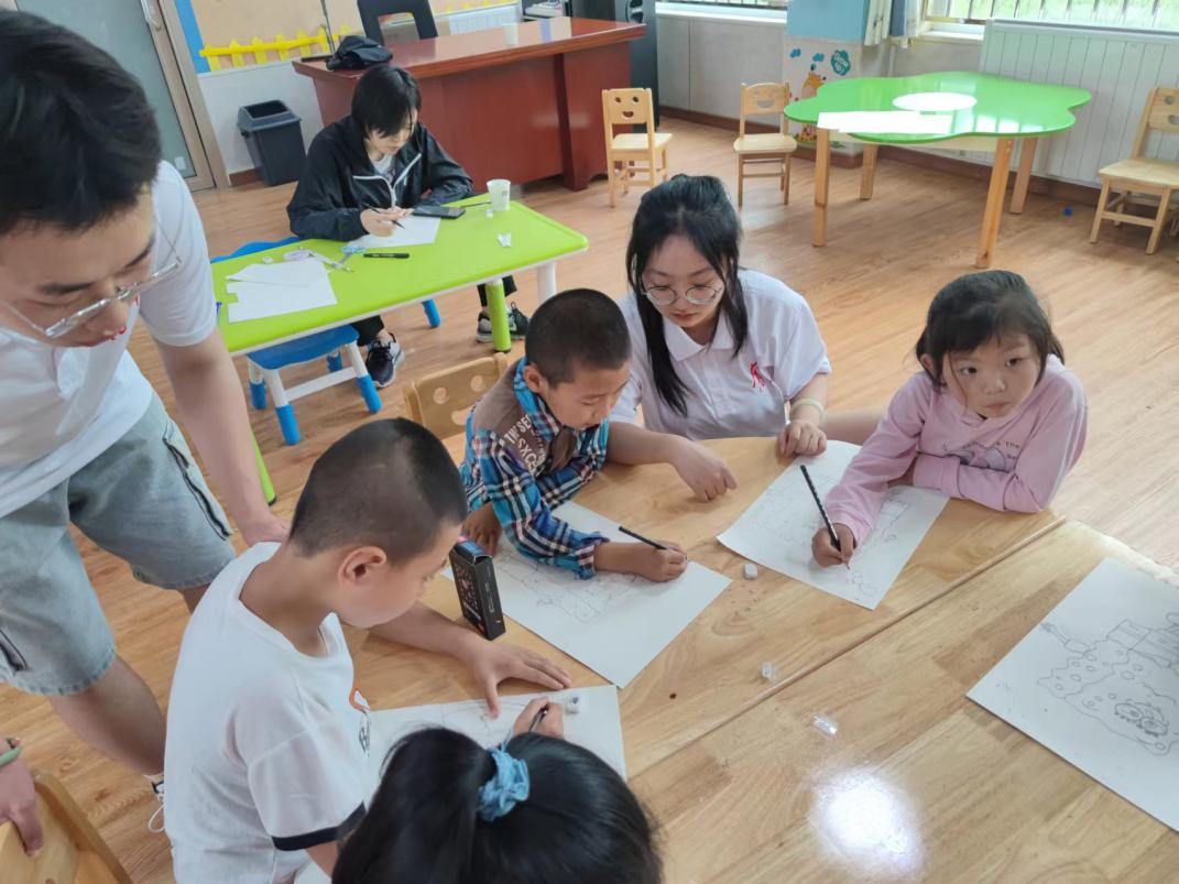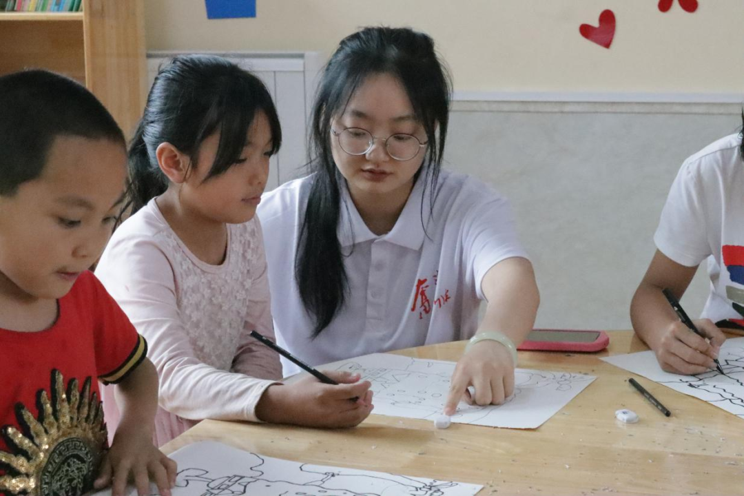 美术课上孩子们拿起画笔勾勒出他们绚烂多彩的童年世界,画出了对外面世界的向往。