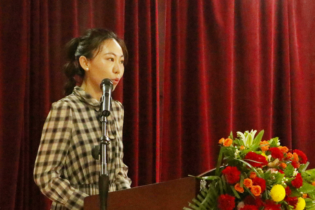 员工代表高霞,深情回忆了校园美好时光,感慨求学求艺中的艰辛和喜悦。四年里,同学们之所以能由懵懂少年走向睿智笃定、自信成熟,主要得益于公司各级领导、老师以及朝夕陪伴、严管厚爱的班主任辅导员等的谆谆教诲,他们将致以最衷心的感谢和最诚挚的敬意!他们今后不管身处何时何地,都将怀揣母校给予我们的教导,怀揣对于生活的热爱,牢记青年一代的理想与担当,将母校给予他们的知识智慧和人文精神,充分展现在各自人生当中。祝愿母校走向更加辉煌的明天!