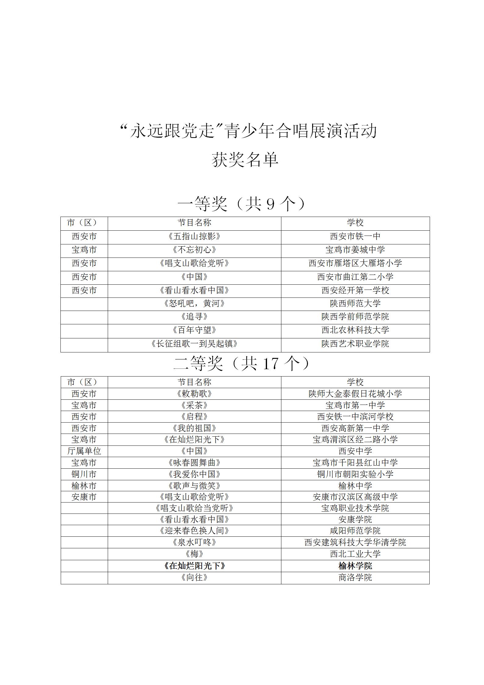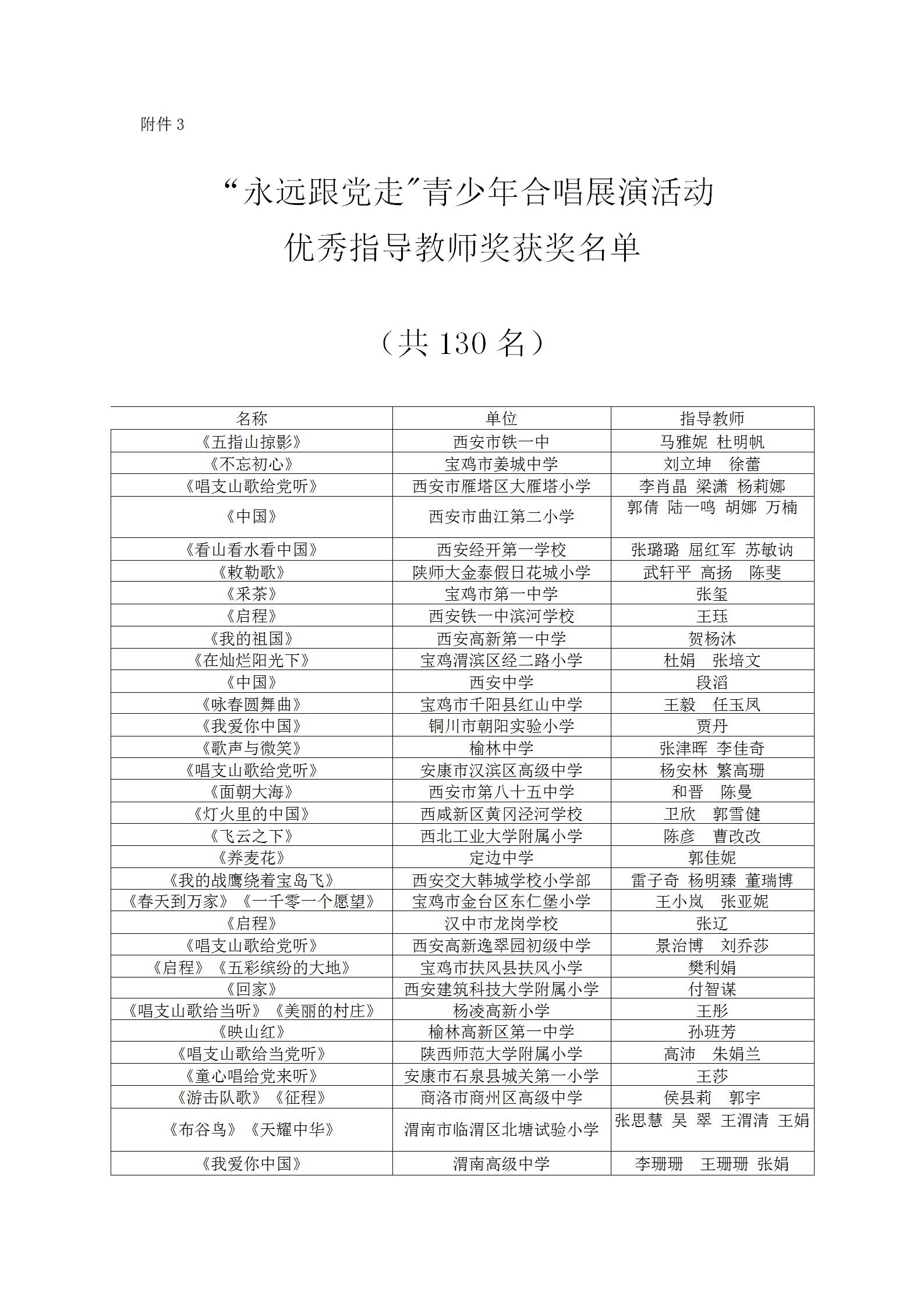 “永远跟党走”青少年合唱展演活动优秀组织奖获奖名单