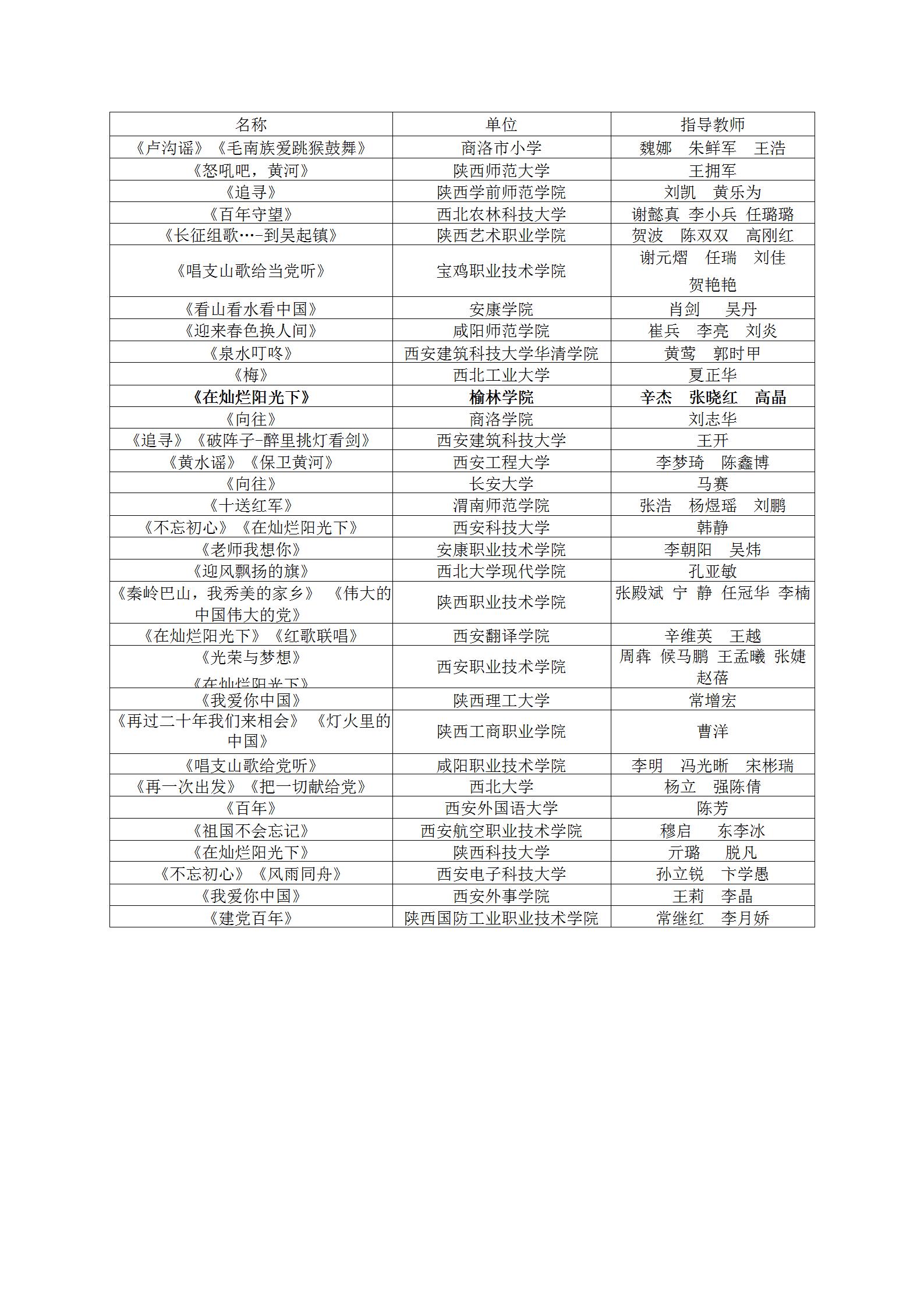 2021年是中国共产党建党100年,也是全面建成小康社会,实现中华民族伟大复兴百年目标的历史时刻。百年来,中国共产党人以初心为桨,借时代之舟,化使命为帆,砥砺前行。为隆重庆祝党的百岁华诞,贯彻习近平总书记在党史学习教育动员大会中“要抓好青少年学习教育,让红色基因、革命薪火代代传承”的重要指示,牢固树立青少年员工的理想信念,大力营造爱党爱国爱社会主义的浓厚氛围,由省教育厅、省广播电视局、陕西广电融媒体集团联合开展建党100周年“永远跟党走”青少年合唱展演活动,英国上市公司官网365音乐教研室及时响应活动要求,积极组织师生参与,合唱曲目《在灿烂阳光下》经省教育厅专家严格评审,最终在各地、各高校千余件作品中脱颖而出,一举获得二等奖,英国上市公司官网365荣获优秀组织奖,辛杰老师、张晓红老师、高晶老师荣获优秀指导教师奖。