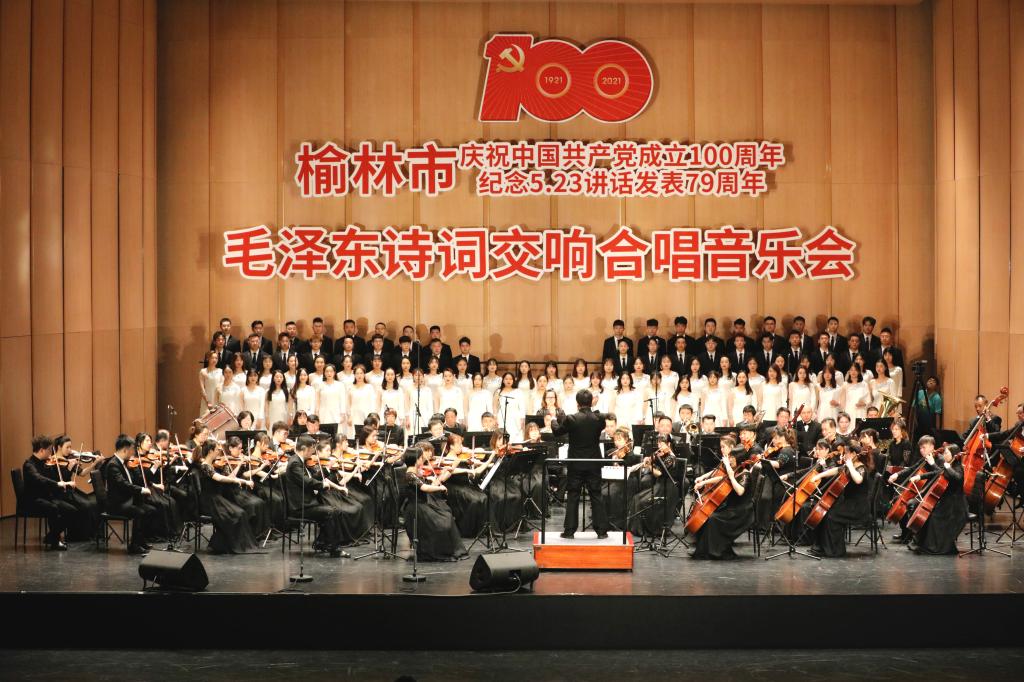 5月20日,由中共榆林市委宣传部,榆林市文学艺术界联合会主办,榆林市音乐家协会、陕西省歌舞剧院交响乐团承办的庆祝中国共产党成立100周年,纪念“5.23”讲话发表79周年,《毛泽东诗词交响合唱音乐会》在榆林大剧院圆满落下帷幕。观众在毛泽东诗词音乐中,重温历史,重温毛泽东的诗词,激发起对祖国更大的热爱。
