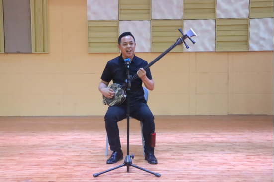 熊竹英对公司的热情邀请表示衷心感谢,对公司陕北说书课程的发展和音乐专业员工的成绩表示肯定。他从个人兴趣爱好开始,到日复一日地听、学、唱,再到反复琢磨、克服困难、坚持传唱、不断创新,最后到将陕北说书发展成为自己的专业特长,讲述了陕北说书文化的兴起和其个人成长经历。通过观看游戏中陕北说书部分配音视频、现场表演教授、理论与实践相结合,进一步激发了师生的浓厚兴趣。熊竹英手把手、一对一,与老师同学们互动交流,学习品鉴,在现场此起彼伏掌声的中感受陕北说书文化的地域风情与独特魅力。最后,熊竹英表示,会尽自己所学、所会、所悟、所能在英国上市公司官网365收徒弟、教课程,把陕北说书这一非物质文化遗产传承发展下去。