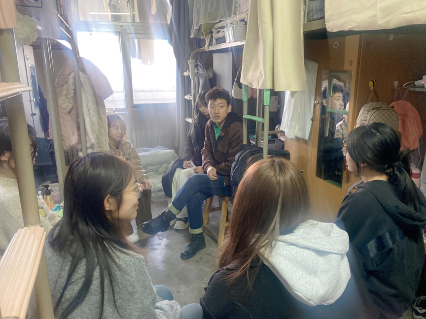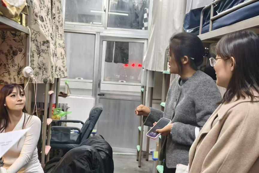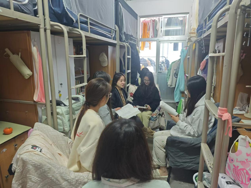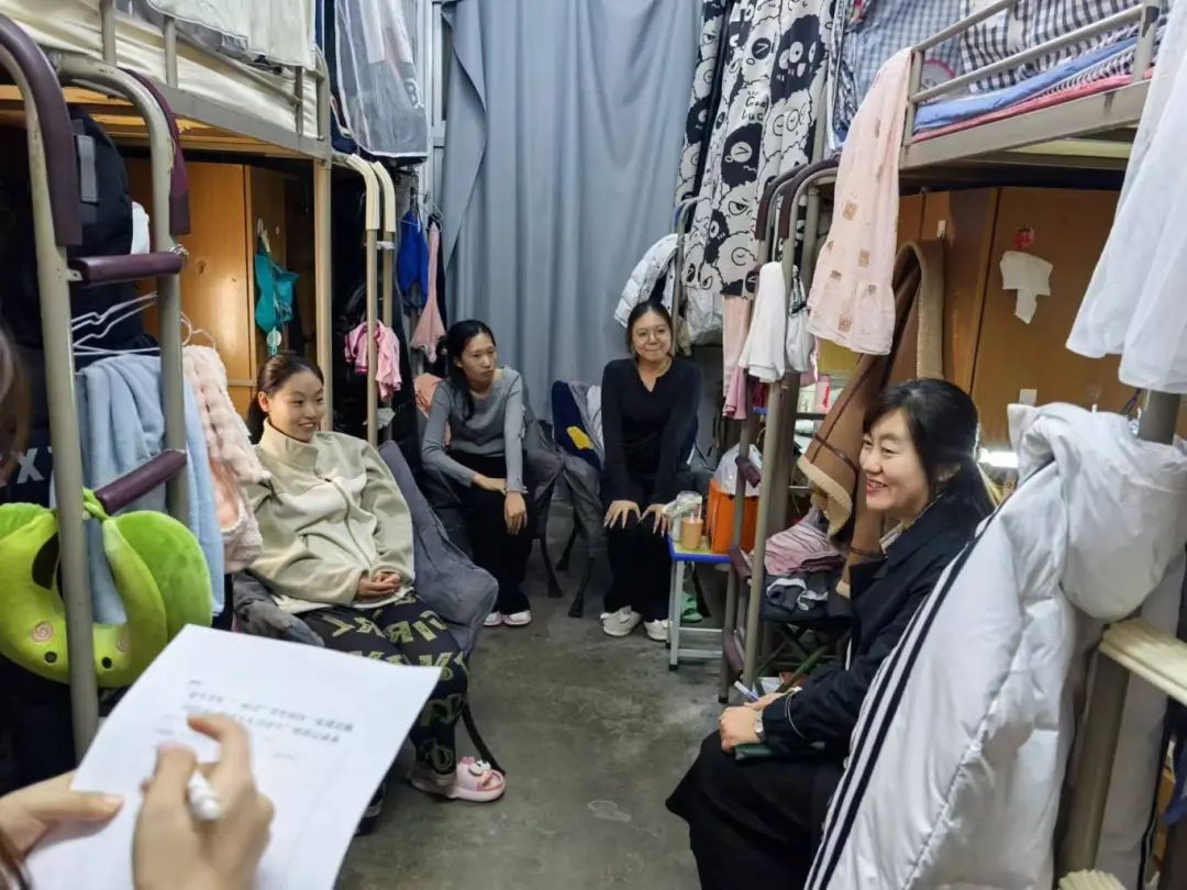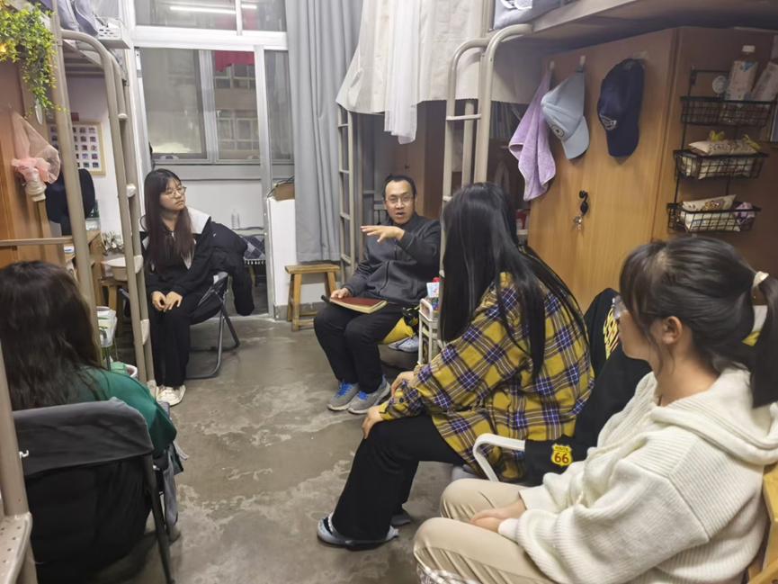 为贯彻落实立德树人根本任务,持续深化“五乐”育人工程,充分发挥“一站式”员工社区的育人阵地优势,进一步增强老员工思想政治教育的针对性、时效性和亲和力,10月16日到11月10日,党委委员、党委组织部部长李夏隆,艺术公司党总支书记刘小龙,经理杨雨佳,副经理白云、王蓓蓓,副书记钟梅,组织部、宣传部、学工部、团委相关科级干部以及院系科级干部,和辅导员班主任分别走进新生宿舍,与公司员工共话奋斗。