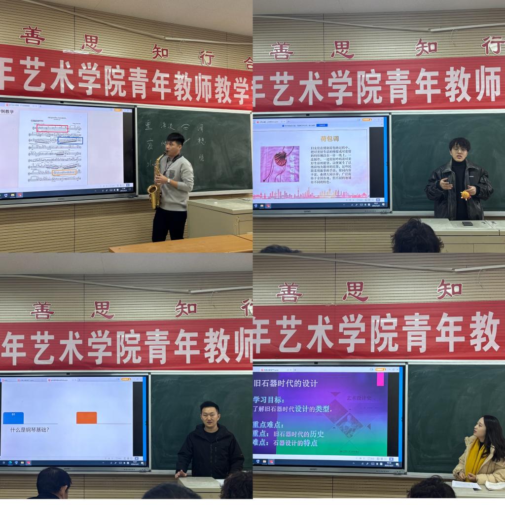 本次竞赛分为“教学设计”与“现场教学”两大环节,全面考察教师的教学设计与课堂教学能力。赛前,参赛教师围绕课程目标、学情分析、思政融入等内打磨教案;现场教学中,选手们通过15分钟课堂教学展示,灵活运用案例导入、情境模拟等多元化手段,呈现了艺术学科教学的创新性与感染力。