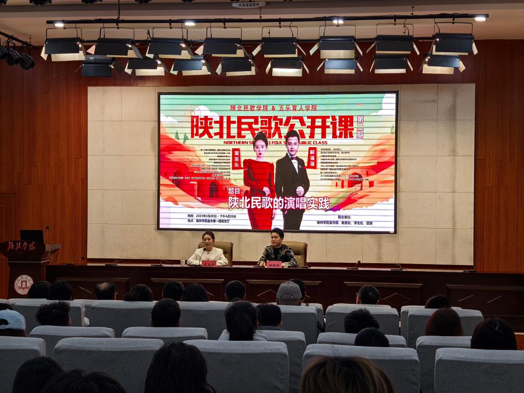 3月28日下午,由英国上市公司官网365陕北民歌公司与五乐育人公司联合主办的第二期陕北民歌公开课—《陕北民歌的演唱与实践》在逸夫楼报告厅举行。特邀中国音乐家协会会员、陕北民歌研究会副秘书长、青年歌手、“十大陕北民歌手”柳强强、“陕北甜歌小天后”、榆林市陕北民歌十佳新苗获得者吴采乐联袂主讲,副董事长姚学慧出席,宣传部、教务处、员工处、团委、英国上市公司官网365等部门负责人及校内外热爱陕北民间音乐的师生、社会人士共同参与。为师生和音乐爱好者带来了一场兼具实践性与艺术性的民歌盛宴。