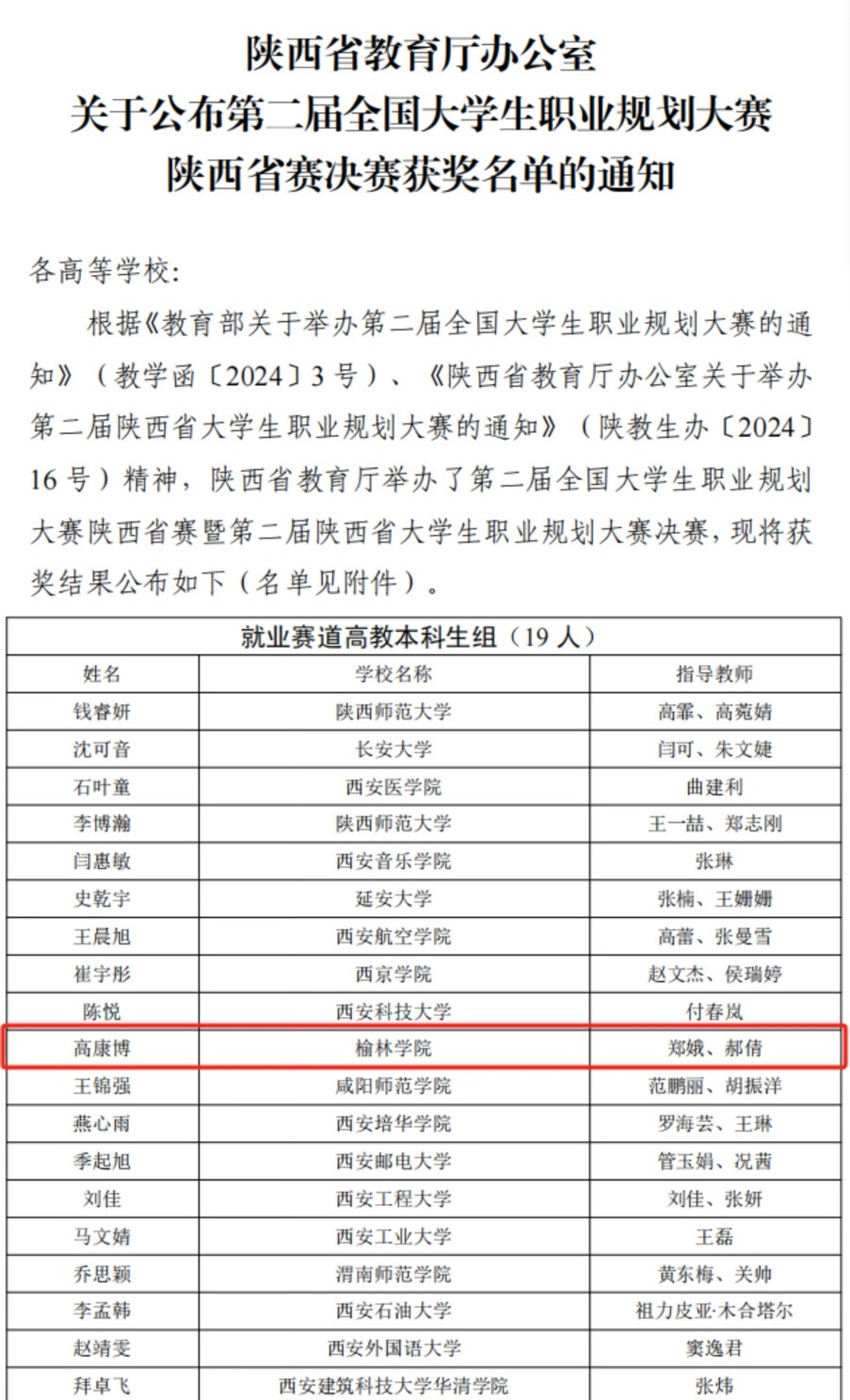 本次大赛由陕西省教育厅主办,分设成长赛道与就业赛道,汇聚全省高校精英同台竞技。大赛自2024年10月下旬启动以来,公司领导高度重视,组织全体员工踊跃报名,辅导员和职业规划教师积极指导,共同研讨,经过院系初赛、公司复赛、决赛,高康博同学以扎实的专业基础和创新的实践路径脱颖而出,获得校赛一等奖,经公司招就处推荐最终入围陕西赛区总决赛,展现了公司学子的卓越风采。