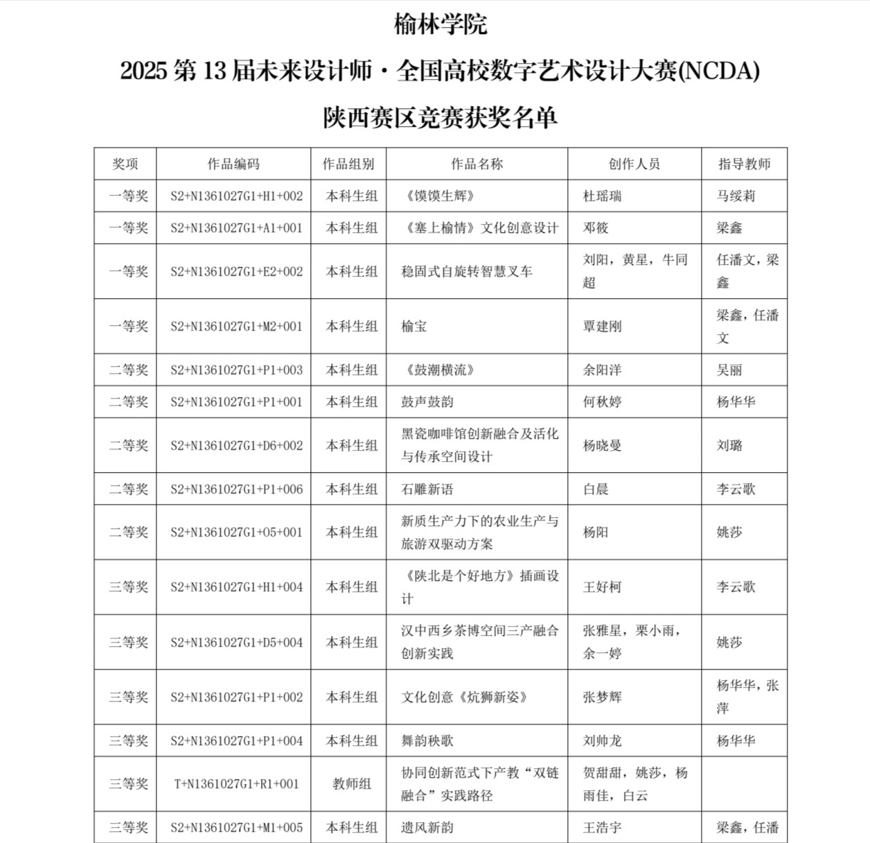 2025年第13届未来设计师·全国高校数字艺术设计大赛(NCDA)陕西赛区结果公布,英国上市公司官网365师生凭借专业实力与创新表现斩获佳绩:本科生组获4项一等奖、5项二等奖、6项三等奖,教师组获1项三等奖。获奖作品涵盖文化创意与数字设计、空间设计、智慧产品设计等领域,既融合陕北地域文化特色,又体现艺术与科技、传统与创新的结合。