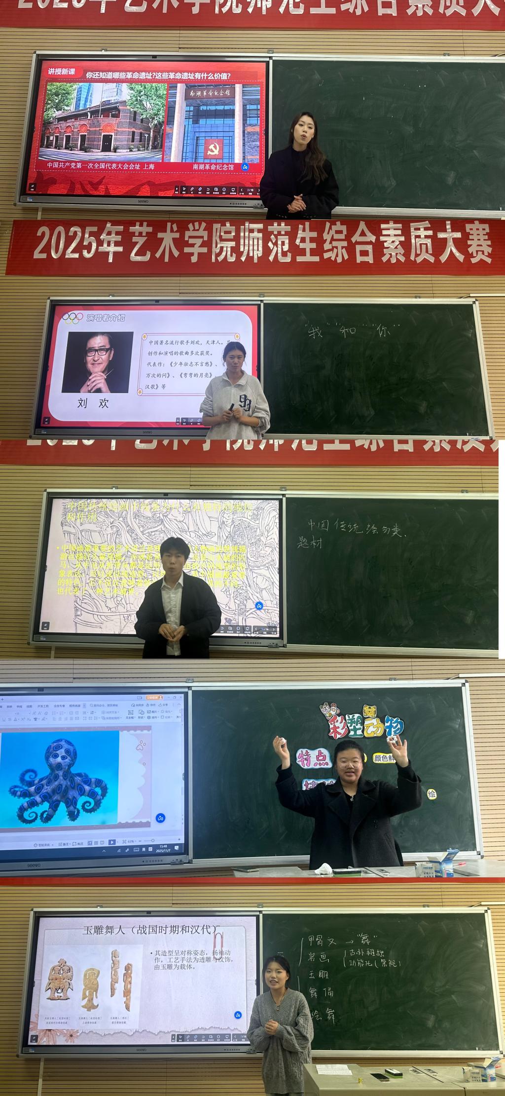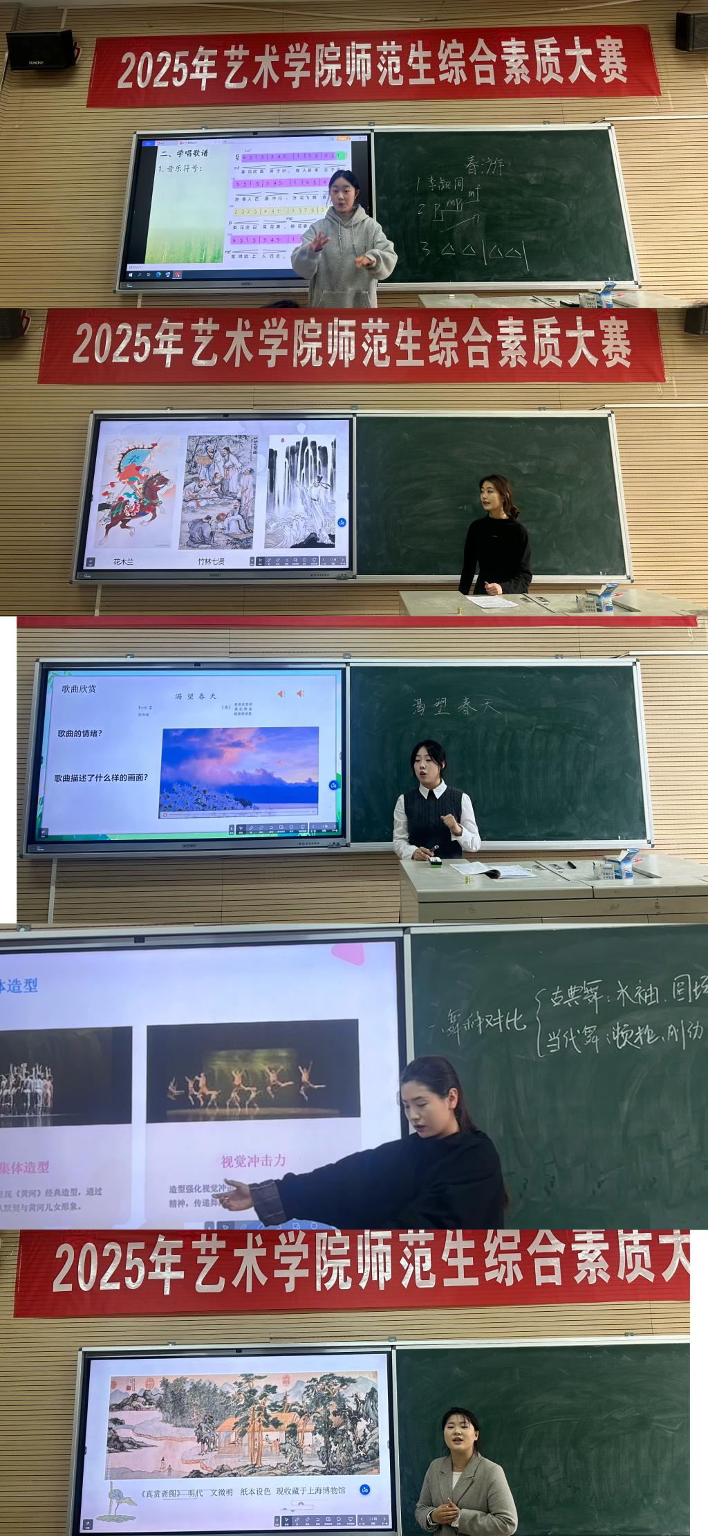 在比赛过程中,参赛员工依次进行了精彩的教学演示。音乐专业的员工巧妙地将乐理知识与课堂互动相结合;舞蹈专业的员工通过规范的动作演示,清晰地阐释了教学要点;美术专业的员工则以精准的构图讲解和技法示范,充分展示了其教学能力。整场赛事充分展现了艺术师范生扎实的专业功底和卓越的教学素养。