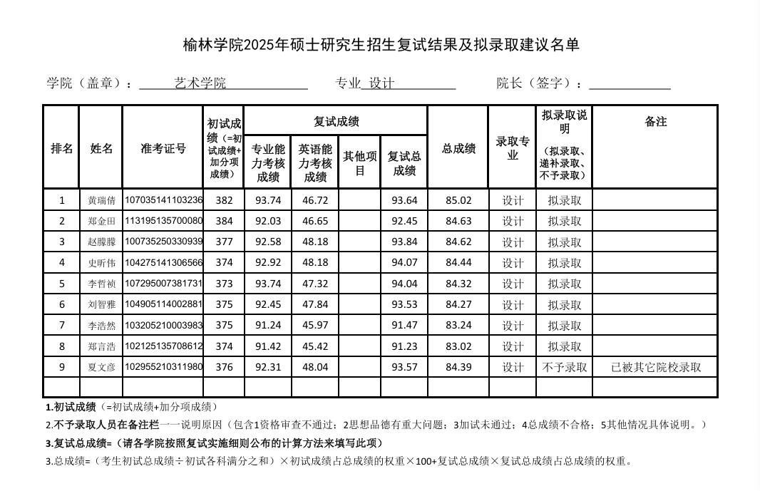 根据《2025年硕士研究生招生复试录取工作实施细则》,公司于2025年4月12日以线下的形式对调剂考生进行了复试。现将参加调剂复试考生结果予以公示:
