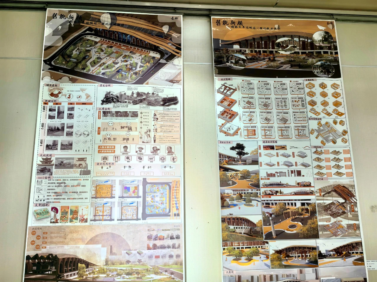 环境设计专业的核心在于通过设计改善我们的生活环境,实现人与自然的和谐共生。此次展览,正是对这一理念的完美诠释。在此次展出的作品中,涉及了关于榆林古城老街巷道与老字号更新设计、煤矿生态修复计划、石峁遗址保护区景观规划设计以及乡村文旅发展等主题,每一件作品都凝聚了同学们的智慧和创意,展现了他们在可持续发展、社区建设和地方特色文化创新设计等方面的独到见解。