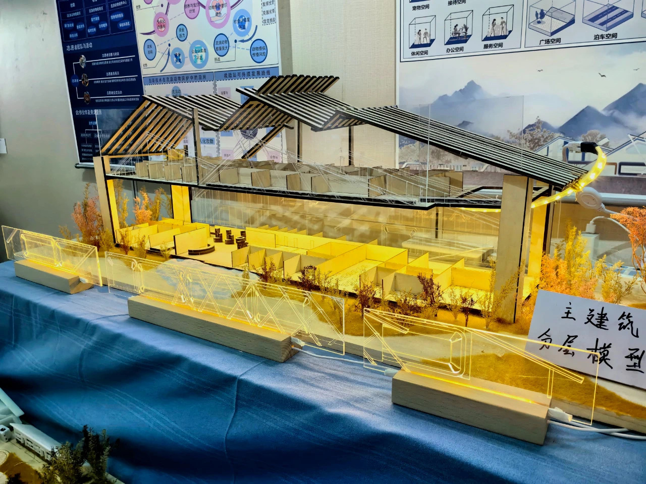 闫潇予阐述道:“为进一步提升大众的环保意识,并致力于湿地环境及候鸟栖息地的保护,我精心策划了一个别具一格的展示中心。在设施布局上,我设置了观鸟平台,使参观者能够近距离观察候鸟的生活状态,感受自然的魅力;在互动装置上,我增加了一些趣味元素,使参观者能够参与其中,与展示内容产生互动。这样的设计不仅让参观者在互动中接受教育,还让他们在参观过程中享受到建筑与自然完美融合的视觉盛宴。总的来说,这个展示中心的设计充分体现了教育融于互动、建筑融于自然的理念,唤起人们对环保和生态保护的重视与关注。”
