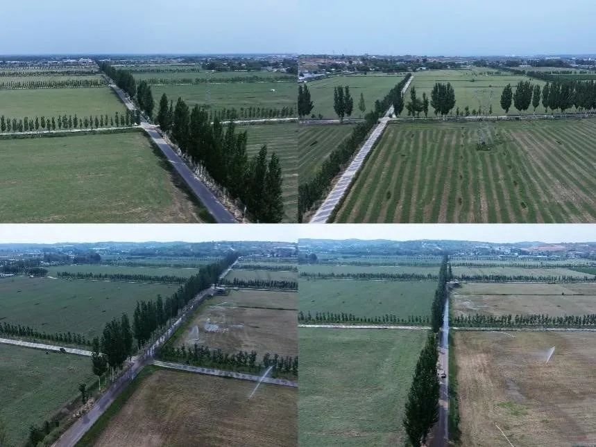 最后一站我们来到了苜蓿园公路, 榆林金鸡滩苜蓿园位于榆阳区金鸡滩镇金鸡滩村,是一个集种植、加工、销售为一体的现代化农业产业园。该园区种植了3400余亩紫花苜蓿,并配套了节水灌溉设施,一眼望去是一大片的绿海。两边的杨树被风吹的沙沙作响。巨大大的灌溉器一圈一圈的洒水。最美公路也是我们本次乡村振兴的重点设计点。