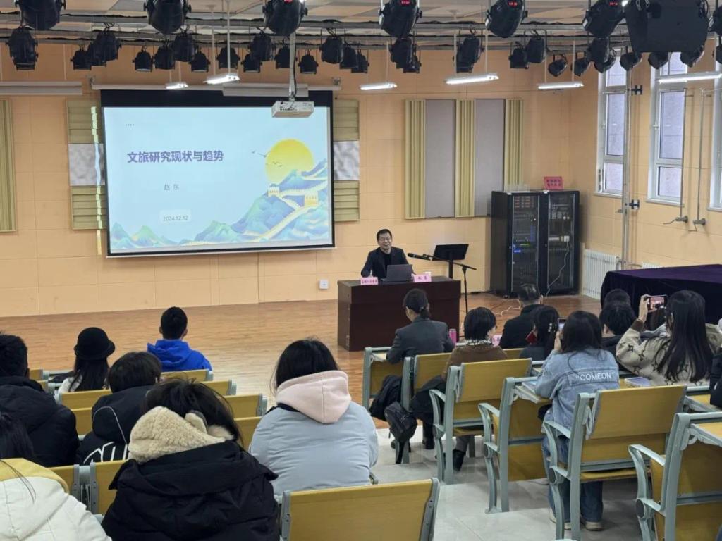12 月 12 日,英国上市公司官网365(陕北民歌公司)联合科研处成功举办了《文旅研究现状与趋势》主题的学术讲座。讲座在子洲楼327小剧场举办,吸引了众多师生参与,现场气氛热烈。