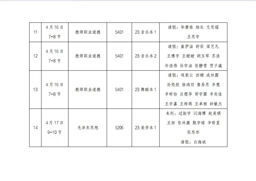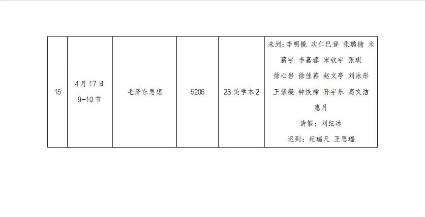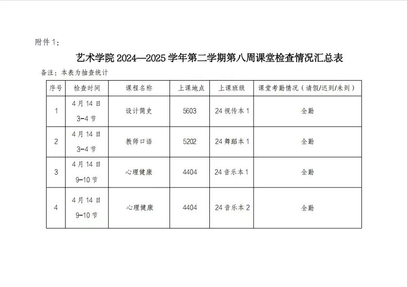 1.课堂学风:大部分班级课堂出勤表现优异,全勤情况较多;少数班级存在迟到或未到现象,影响课堂秩序。
